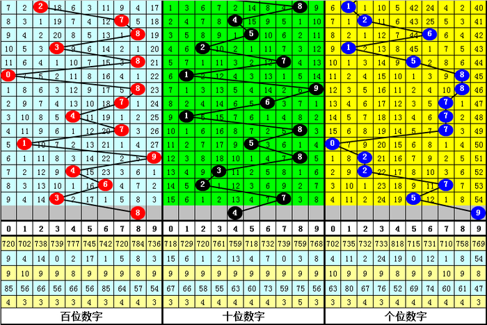 百位:上期开出3,奇数,偶号最近两周明显活跃,上期轮空,本期看好8。