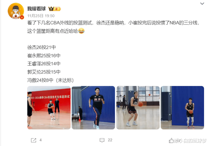 从目前爆料的一些数据能看出崔永熙的恢复状态非常好,CBA外线投篮测试,崔永熙25中16,比王睿泽海出色,徐杰26中21,郭艾伦是25中15。
