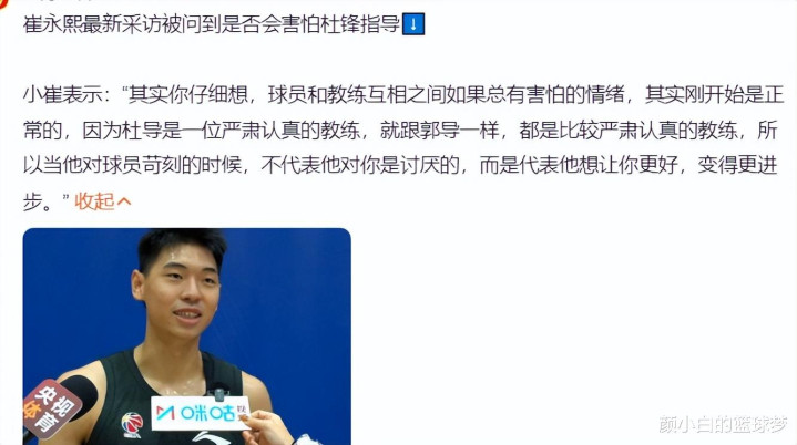 崔永熙也谈到了杜锋、杨瀚森等人的话题,但他最多的还是谈自己身体情况,他表示自己会努力康复争取赶上CBA新赛季的第一场比赛,他还表示一开始害怕杜锋指导属于正常情况。
