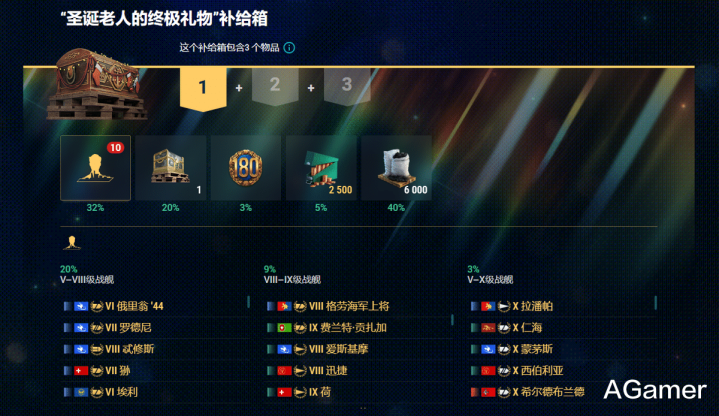 另外,今年圣诞还新增了“圣诞老人的终极礼物”补给箱,该箱子掉落高级船的爆率比“大号圣诞老人的礼物”补给箱还要高,而且高账、金币等资源掉落的数量也更多哦!