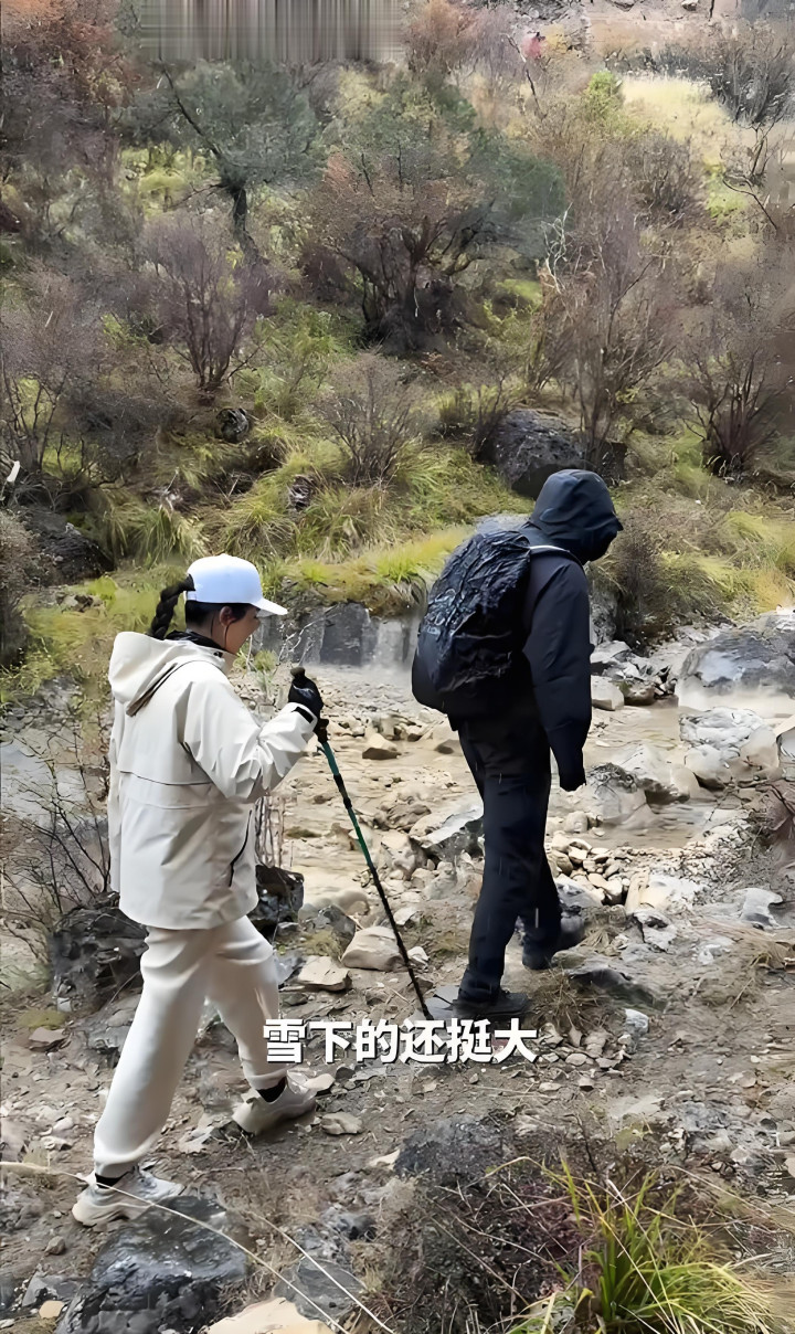 与之形成鲜明对比的是首次徒步登山的田朴珺。44 岁的她作为独立女性代表,此次登山做足了精致准备。专业碳纤维登山杖、保暖又时尚的户外套装,再加上同色系的配饰点缀,整个人看起来装备精良、气场十足。